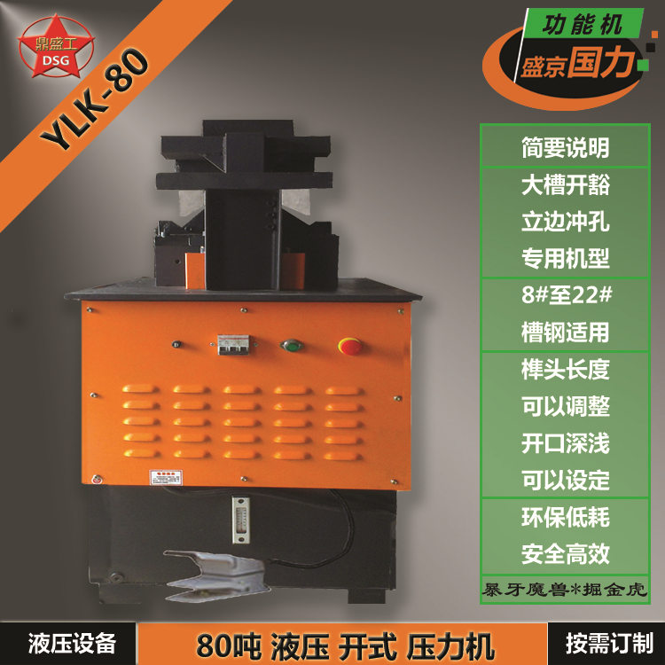 适用于大中型槽钢加工 8#至22#槽钢 用于槽钢开豁, 开口的横纵深度可调。 或用于槽钢立边冲孔。 及相关刀具。 并存档相关资料。 以备后续增添或更改工艺。 常规刀具常备, 统一定价,及时供应。 |